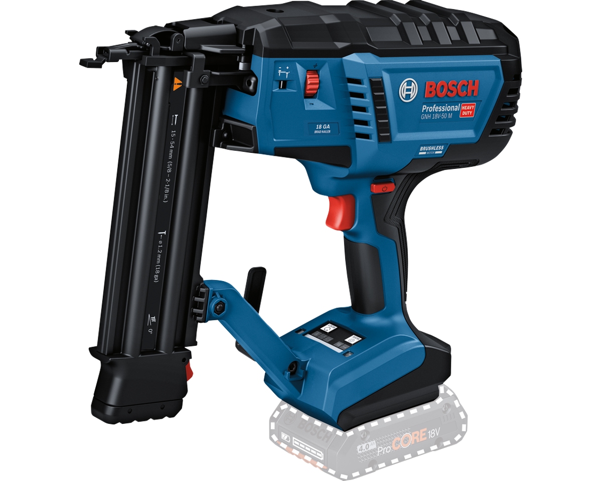Bosch GNH 18V-50 M Professional je revoluční akumulátorová hřebíkovačka typu "Brad", která poskytuje plnohodnotný výkon pneumatického nářadí bez nutnosti tahat kompresor nebo kupovat drahé plynové bombičky. Je určena pro kolářské hřebíky o průměru 1,2 mm (18 ga) a délce až 50 mm. Díky bezuhlíkovému motoru, minimálnímu zpětnému rázu a možnosti kontaktního nastřelování je ideální volbou pro precizní dokončovací práce, montáž lišt a výrobu nábytku.