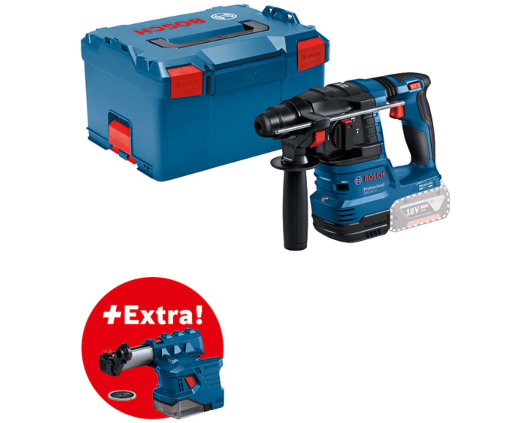 Aku kombi kladivo Bosch GBH 18V-22, SDS-Plus + GDE 12, solo, L-Boxx v kategoriích: Vrtačky a Kladiva