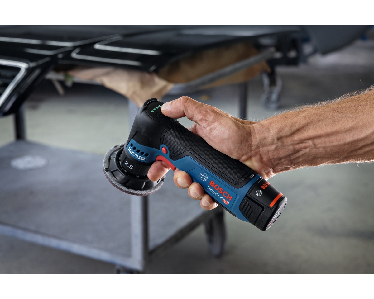 Bosch GEX 12V-77 je vysoce výkonná akumulátorová bruska s 77mm brusným talířem, která představuje zlatou střední cestu mezi bodovým broušením a prací na větších plochách. Díky bezuhlíkovému motoru a jemnému kmitu 2,5 mm je ideální pro precizní dokončovací práce, opravy laků (spot repair) a broušení dřevěných detailů. Nabízí bezkonkurenční ergonomii, možnost mokrého i suchého broušení a inteligentní ovládací rozhraní HMI pro perfektní kontrolu nad výsledkem.