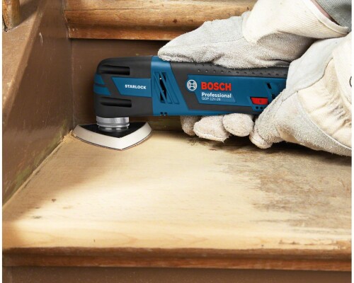 Bosch GOP 12V-28 Professional je nejkompaktnější akumulátorové multifunkční nářadí v řadě Bosch Starlock. Díky své lehké konstrukci a extrémně štíhlé rukojeti nabízí bezkonkurenční ergonomii, která je ideální pro precizní práci v úzkých prostorech. Je perfektním pomocníkem pro výřezy do sádrokartonu, lícovací řezy, broušení a úpravy nejrůznějších materiálů od dřeva až po kov. S rozhraním Starlock a plynulou regulací otáček získáte maximální kontrolu a efektivní přenos síly při každém řezu.