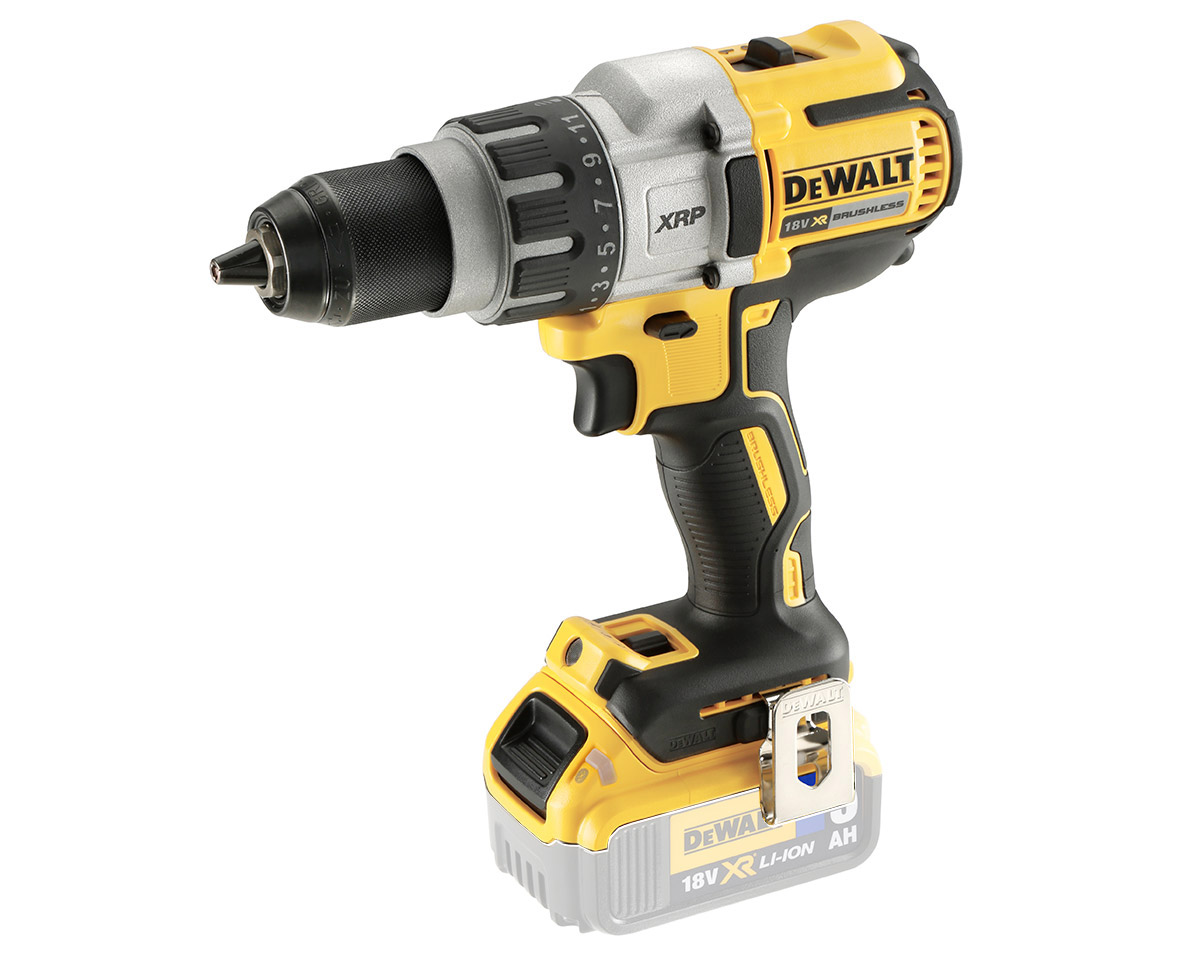 Extra silný 3-rychlostní akušroubovák s příklepem DeWalt 18V XR Li-Ion XRP, vhodný pro vrtání velkých otvorů a šroubování s velkým kroutícím momentem až 95 Nm. Baleno v kufru Tstak. Verze bez akumulátorů a nabíječe