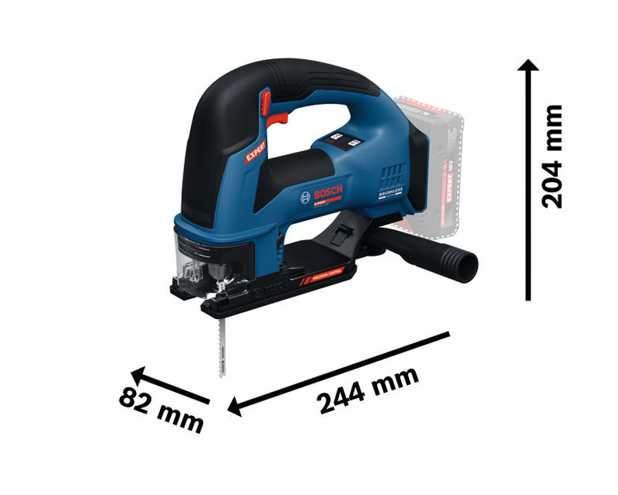 Maximální bezpečnost s Drop Control: Bezpečnostní funkce, kterou znáte z úhlových brusek, je nyní i u pily. Pokud nářadí vyklouzne z ruky a dopadne na zem, senzor pád okamžitě detekuje a motor zastaví, čímž chrání uživatele i obrobek.