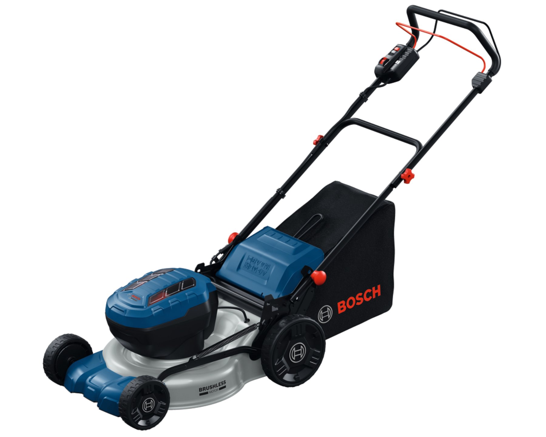 Profesionální aku sekačka s kovovým šasí, samostatný regulovatelný pojezd, výkonný bezuhlíkový motor na 2 akumulátory Bosch Profi, šířka záběru 46cm, centráně nastavitelná výška sečení 30-70mm, objem textilního koše 60l, hmotnost 28,5kg
