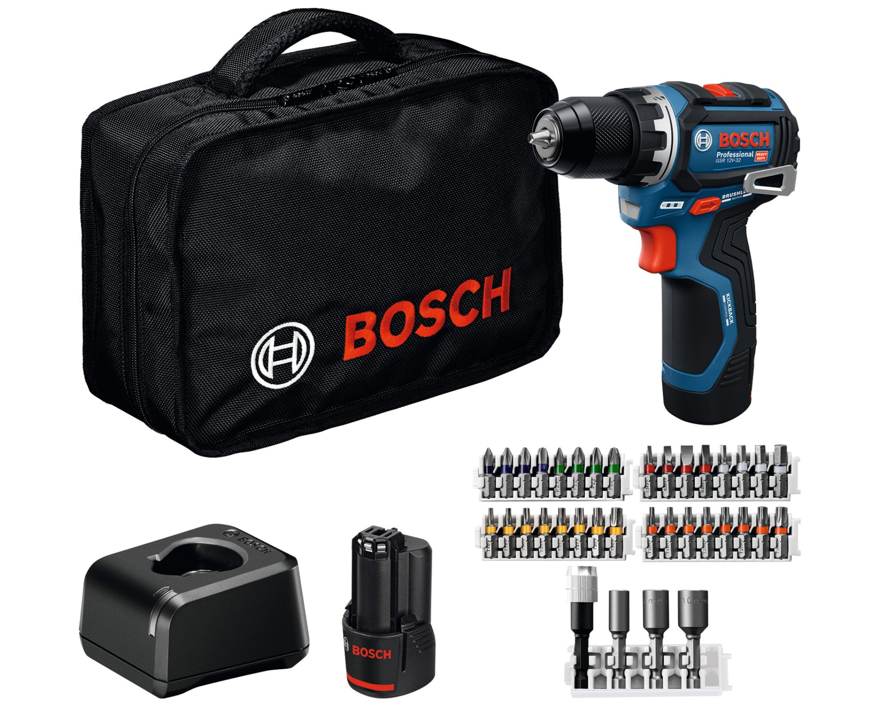 kompaktní aku šroubovák s kovovým sklíčidlem a systémem KickBack Control, bezuhlíkový motor, napájení 12V akumulátorem, nízká hmotnost 0,7kg, nabíječka, 2x akumulátor, textilní brašna, sada příslušenství