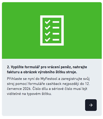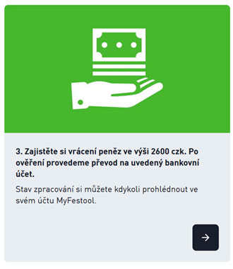 - Číslo bankovního účtu (IBAN), kam vám Festool peníze pošle.