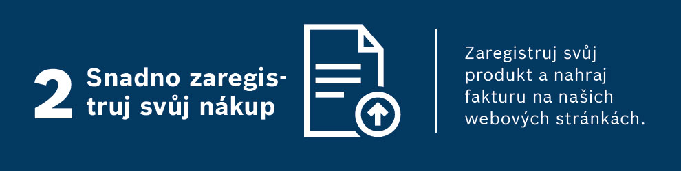 Nahrajte fakturu (doklad o nákupu) na portál Bosch PRO360. Pokud ještě nemáte účet, jeho založení je rychlé a otevře vám dveře k dalším výhodám, jako je správa nářadí a 3letá záruka. Adresa pro přihlášení do portálu Bosch 360