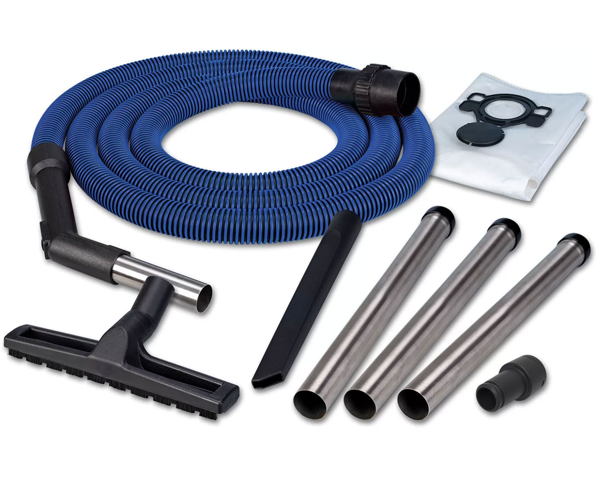 Kompletní řešení: Sada obsahuje vše, co potřebujete – od hadice, přes hubice pro různé povrchy, až po speciální přechodku pro připojení k nářadí a textilní filtrační sáček.