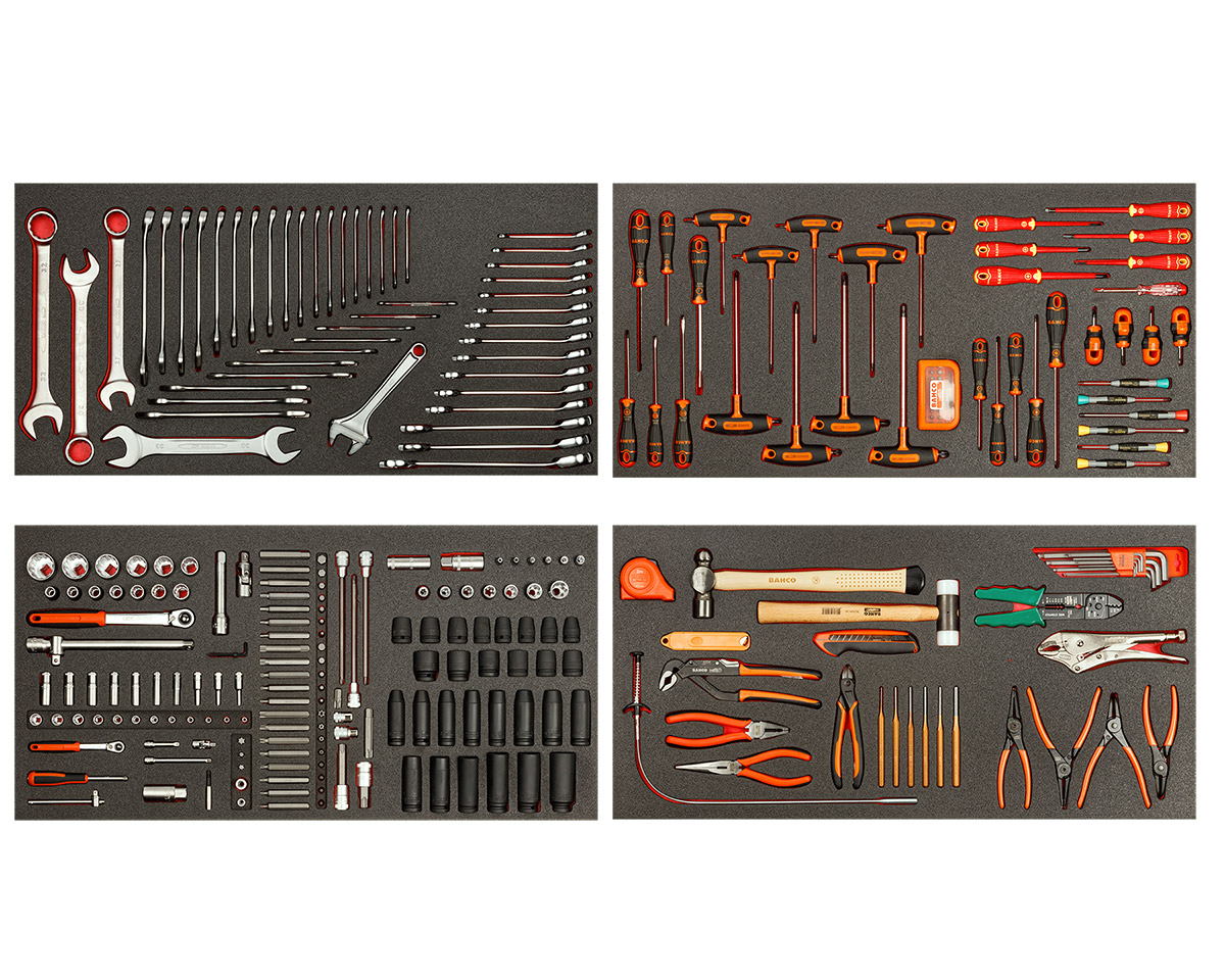 Obsah balení – 4 pěnové moduly a celkem 295 ks nářadí