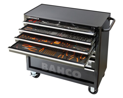 Mobilní dílenský vozík Bahco, 9 zásuvek, černý + 357ks nářadí