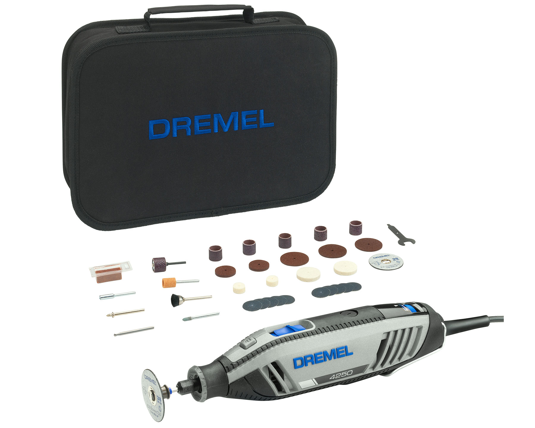 U nářadí Dremel® 4250 se maximální výkon doplňuje s vysoce kvalitní a odolnou konstrukcí. Tato sada je dodávána s multifunkčním nářadím Dremel 4250, 35 kusy příslušenství a textilní taškou, ideální pro vaše náročné kutilské projekty.