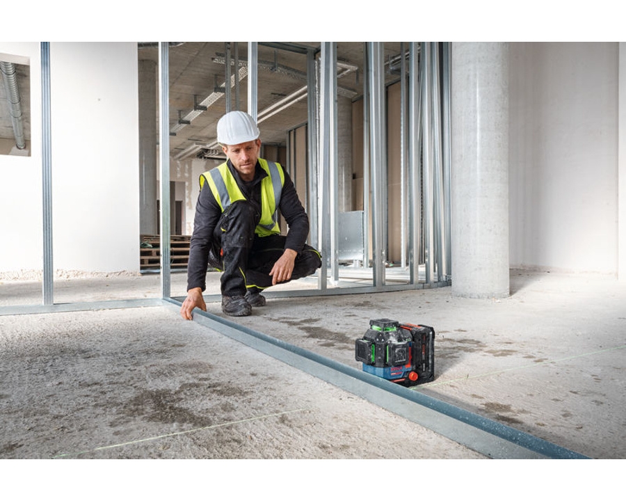 Všesměrová přesnost (3× 360°): Přístroj promítá jednu vodorovnou a dvě svislé čáry v rozsahu 360 stupňů. To umožňuje provádět nivelaci v celé místnosti současně – ideální pro týmovou práci, kdy jeden řemeslník dělá podlahy a druhý sádrokartony.