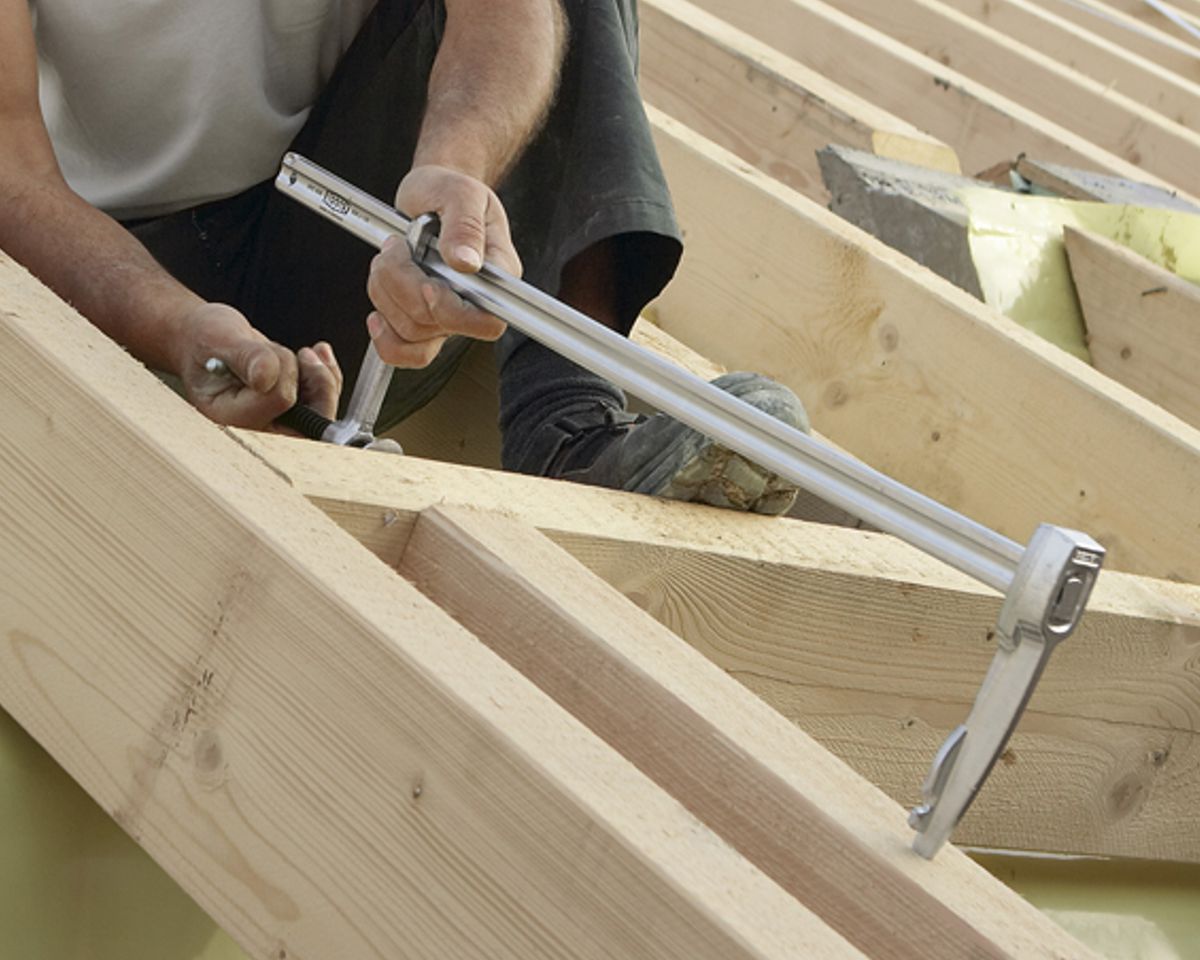 - krokvová stahovací svěrka Bessey ideální pro montáž dřevěných konstrukcí, střech, pergol atd