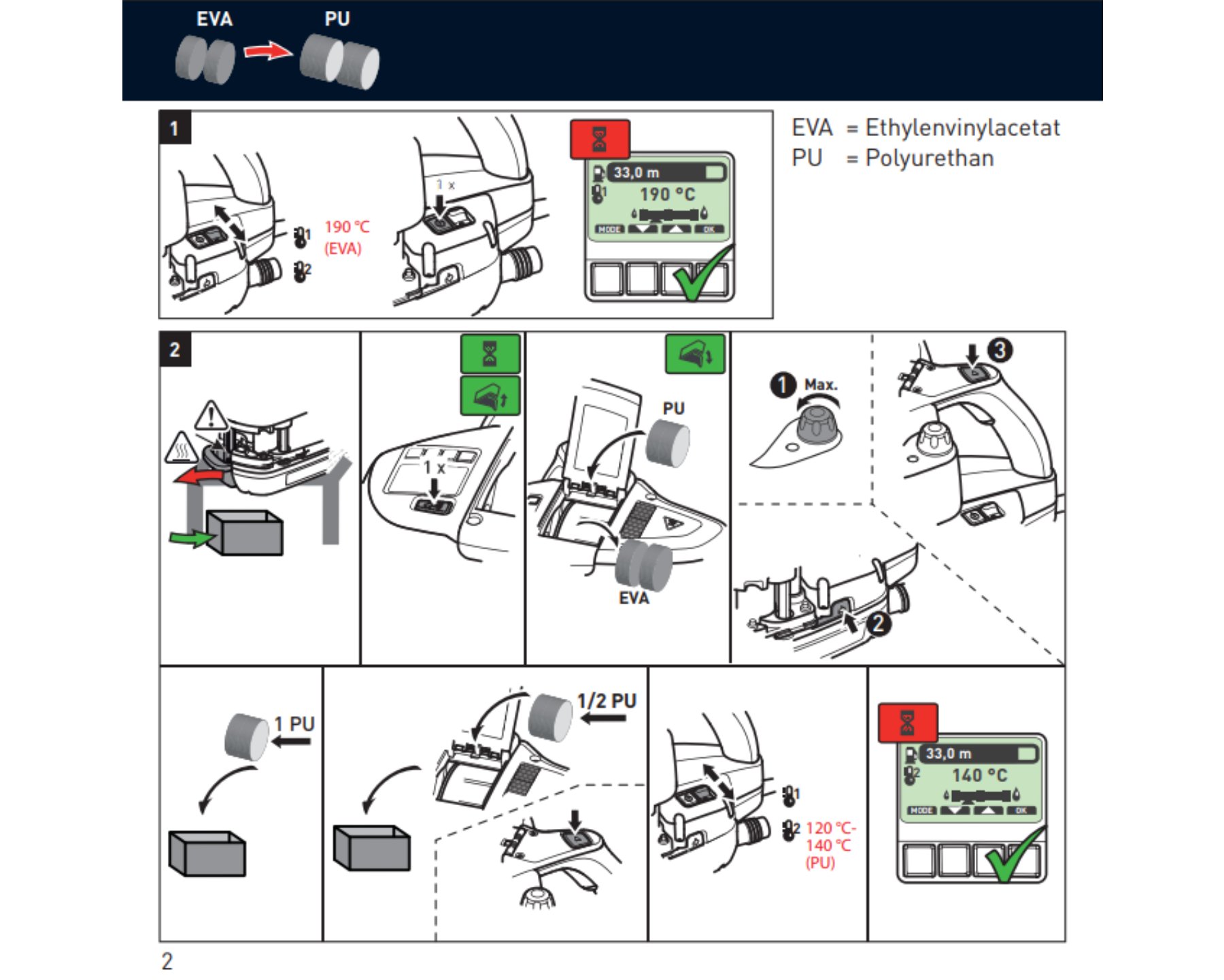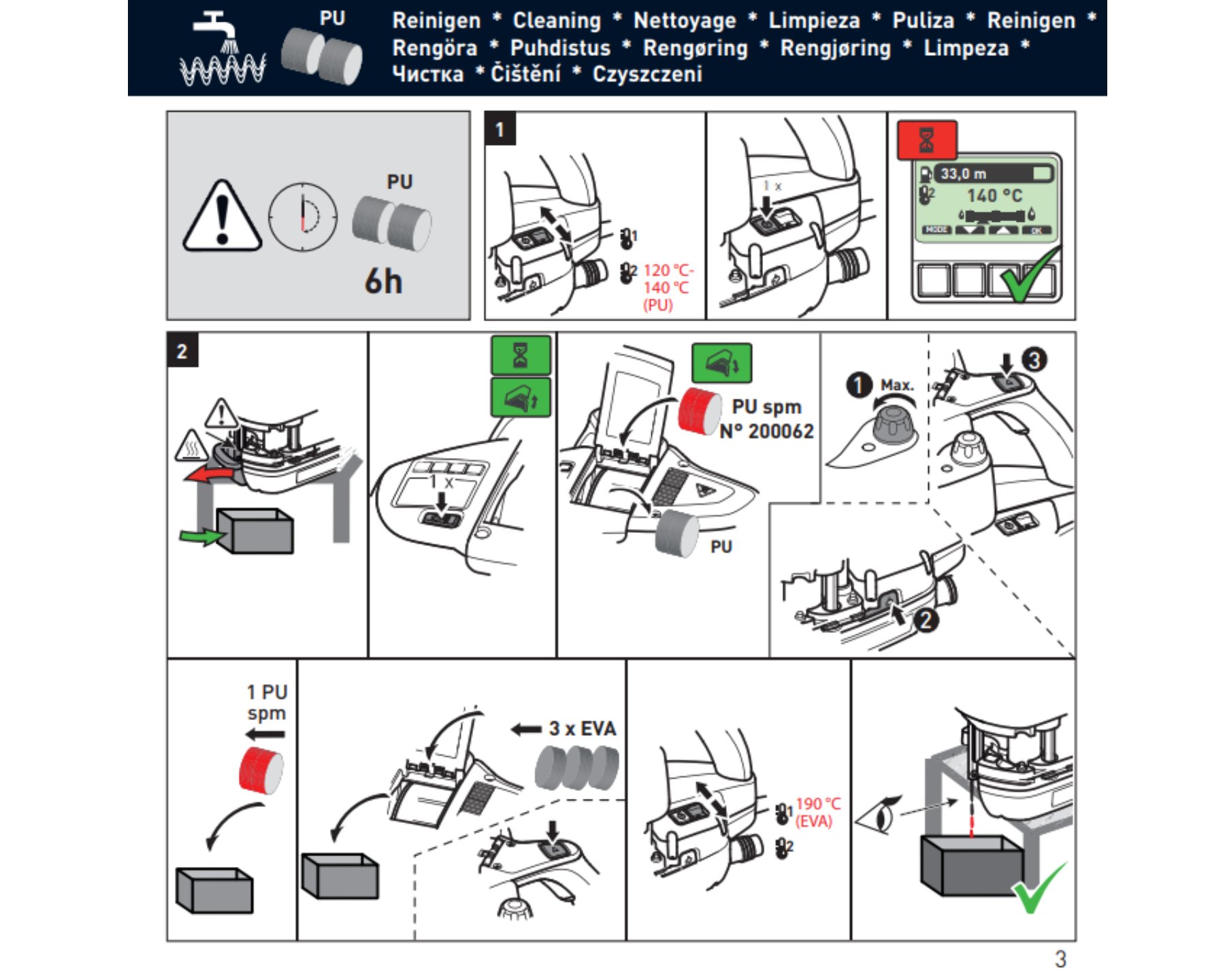 - pozor: po práci použijte mycí prostředek pro čištění nářadí (mycí prostředek PU spm 4x-KA 65, číslo zboží 200062)