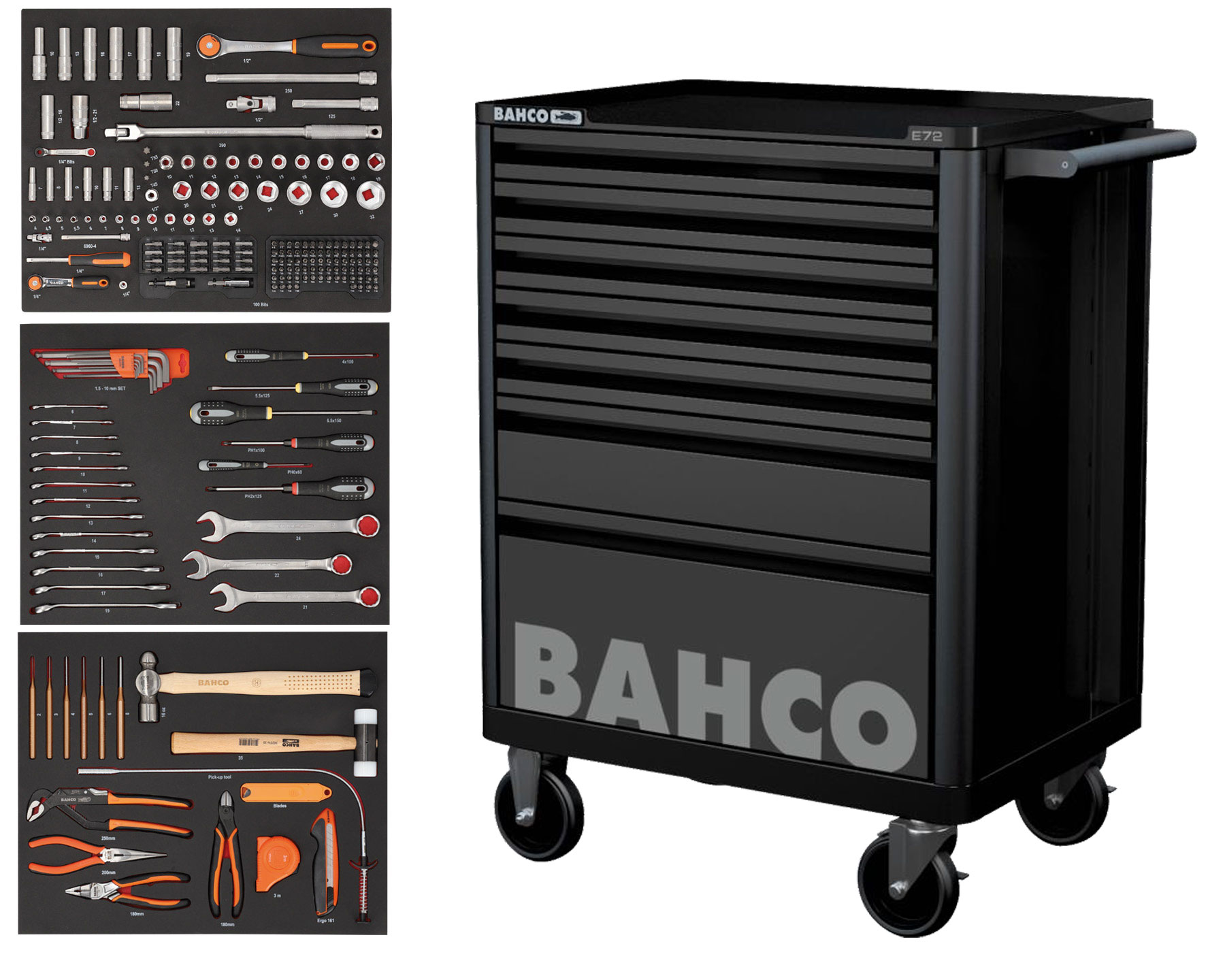 Mobilní dílenský vozík Bahco E72, 7 zásuvek, černý + 216ks nářadí v kategoriích: Mobilní vozíky