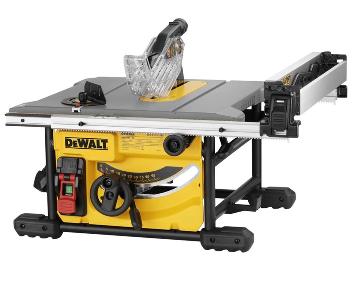 Mobilní stolní pila DeWalt DW7485, průměr kotouče 210mm, prořez 65mm, příkon 1850W, hmotnost 20,5kg