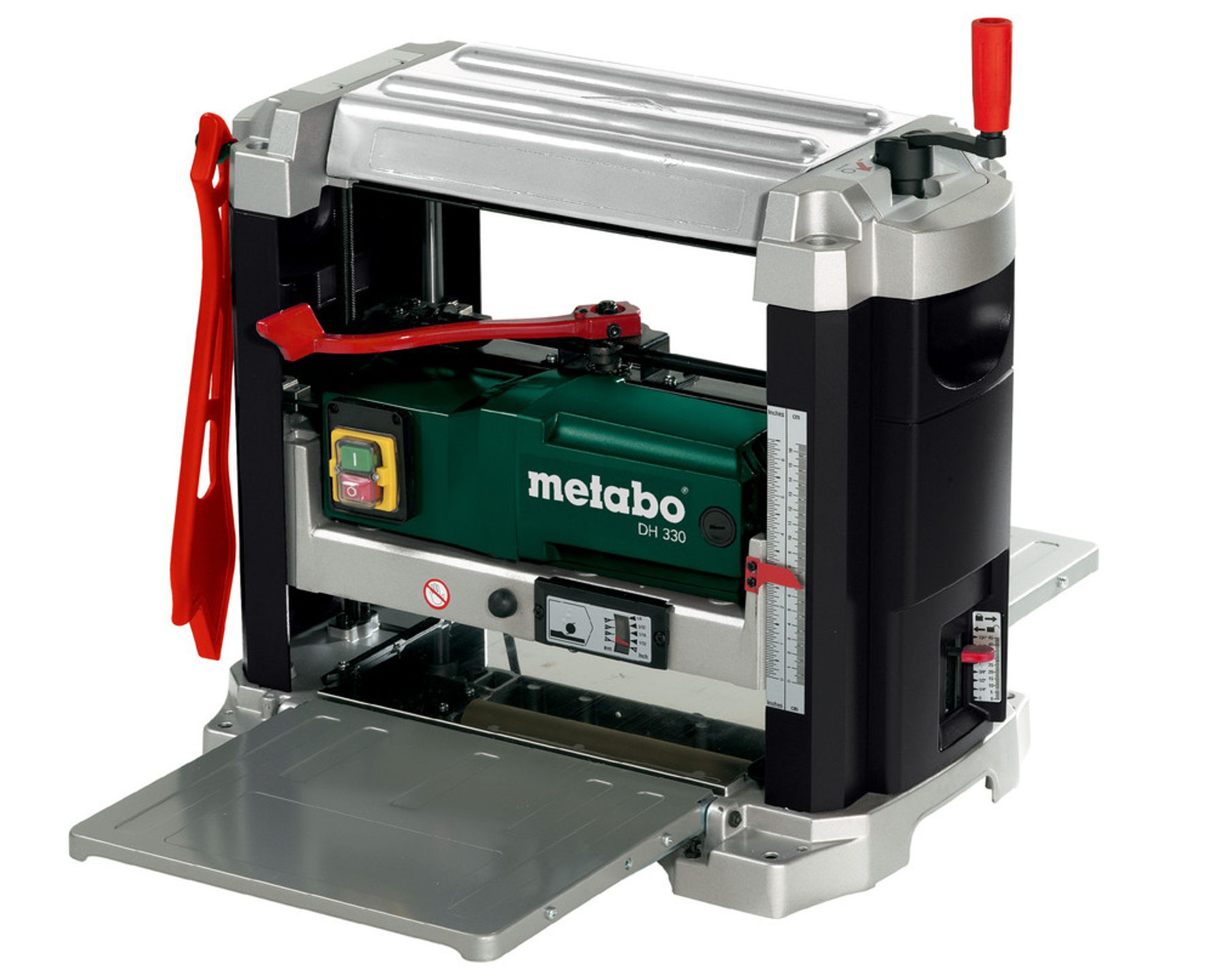 Mobilní tloušťkovací frézka "protahovačka" Metabo DH 330, pracovní šířka 330mm, max. tloušťka materiálu 152mm, hmotnost 35kg, příkon 1800W, rozměr 579x857x574mm