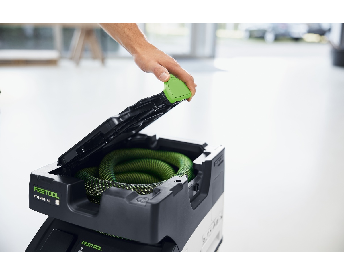 Na vnější straně vysavače CTL MIDI také najdete sklopný mechanismus pro snadné odvíjení a navíjení kabelu. Samozřejmostí je také SYS-Dock s T-LOC pro spojování Systainerů obratem ruky. Průmyslový vysavač vám zajistí maximální pohodlí a čistý vzduch při servisních a montážních pracích.