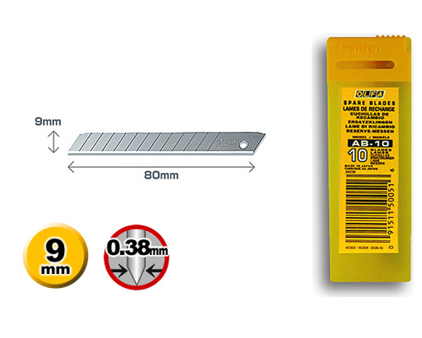 Náhradní čepele OLFA AB-10, výška 9mm, (balení 10ks)