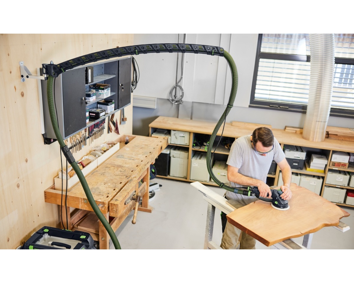 Proměňte svou dílnu v moderní a bezpečné pracoviště s odsávacím ramenem Festool CT-ASA FLX W. Tento nástěnný systém je navržen pro řemeslníky, kteří vyžadují maximální komfort a pořádek. Rameno efektivně vynáší odsávací hadici do prostoru nad pracovní stůl, čímž eliminuje největšího nepřítele plynulé práce – hadici pletoucí se pod nohama nebo pod nářadím.
