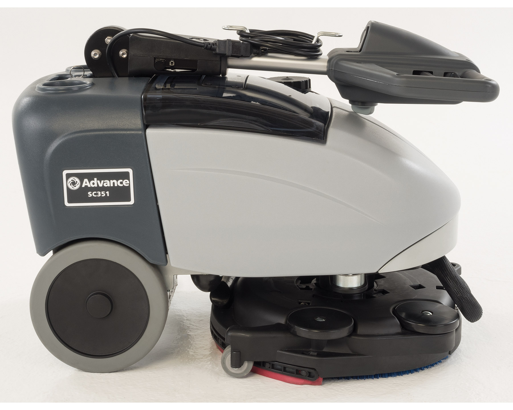 Scrubber SC351 je bateriově napájený kompaktní mycí stroj s technologií otočné mycí hlavy,který umožňuje mýt a sušit při jízdě vpřed i vzad. Systém "Start and go" nevyžaduje zvláštní zaškolení obsluhy.
