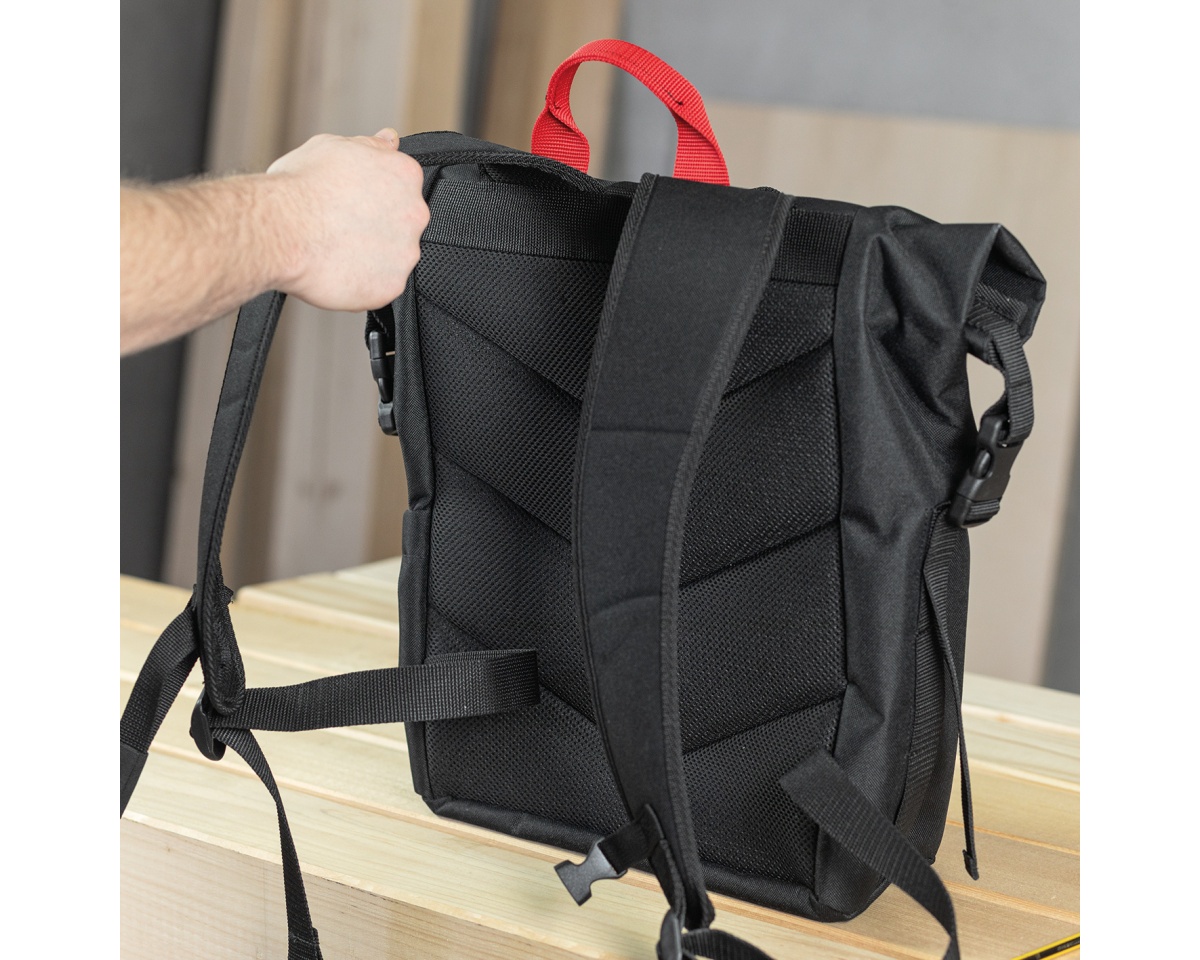 Rolovací batoh Mafell TZ-RS14 RT je moderní, vysoce odolné zavazadlo navržené pro profesionály i fanoušky značky na cestách. Díky flexibilnímu roll-top systému lze snadno přizpůsobit objem batohu aktuálnímu obsahu, zatímco robustní materiály chrání vaše věci před nepřízní počasí i hrubším zacházením. Je ideální pro přenášení dokumentace, notebooku nebo drobného ručního nářadí a příslušenství, ať už míříte na stavbu, na jednání s klientem nebo do města.