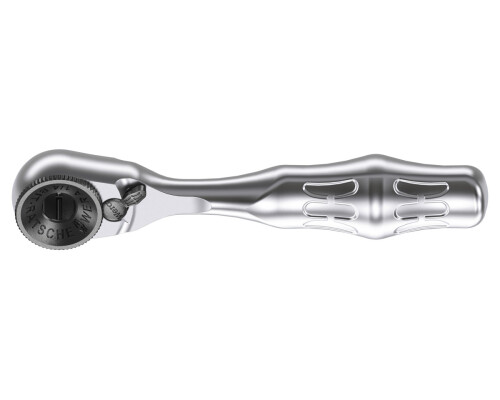 Ráčna Zyklop Mini 1: Celoocelová konstrukce s jemným ozubením (60 zubů) umožňuje velmi malý zpětný úhel (pouhých 6°). Navzdory své kompaktní velikosti zvládne krouticí moment přes 65 Nm.