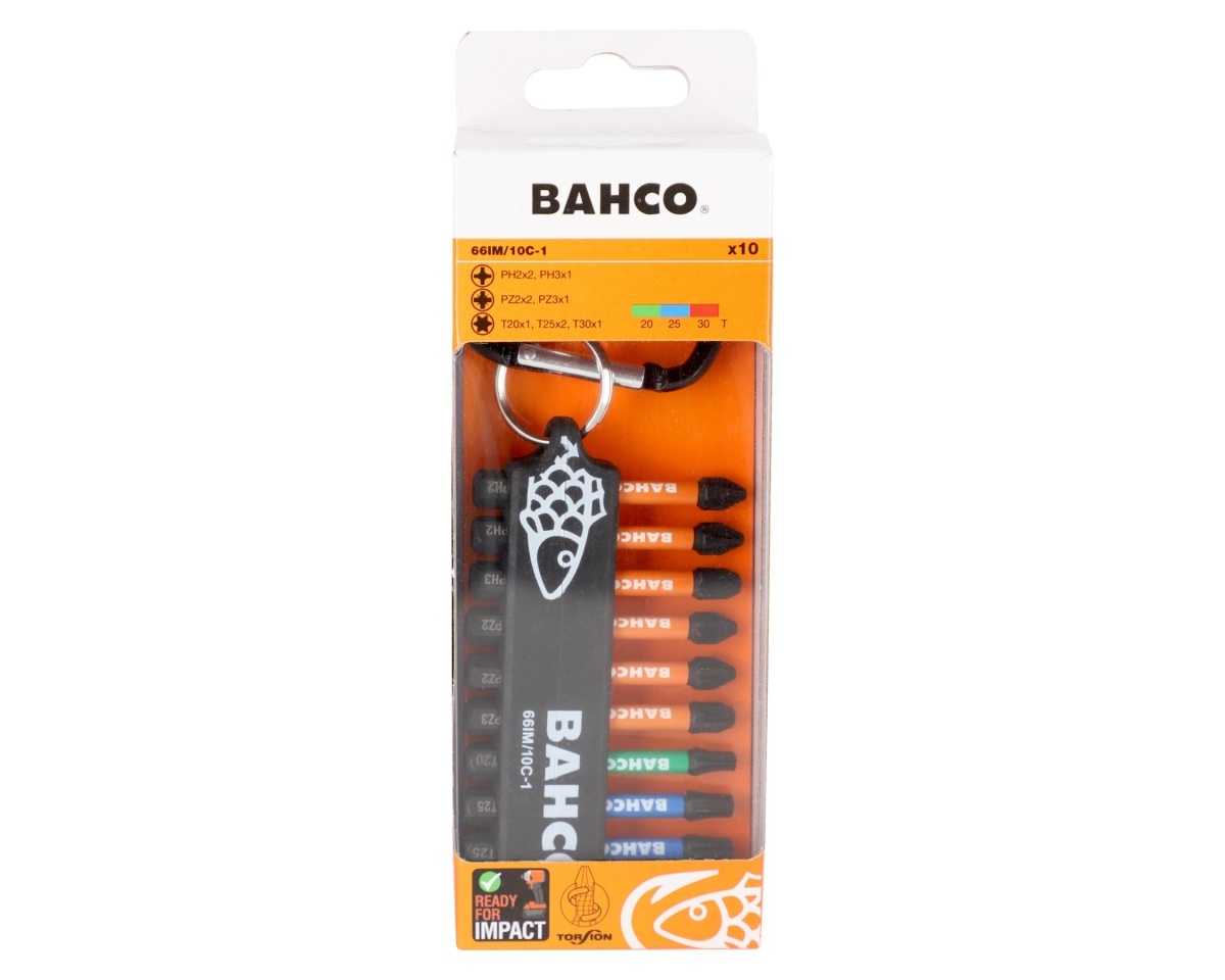 Sada rázových torzních bitů Bahco 66IM, 10ks v držáku s karabinou v kategoriích: Šroubovací bity