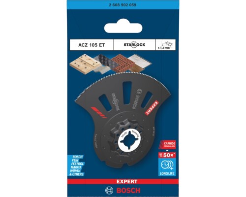 Hledáte jeden nástroj, který si poradí s laminátem, kovem i plasty bez neustálého měnění nástrojů? Bosch EXPERT ACZ 105 ET je prémiový segmentový list s technologií Carbide Technology, který vyniká extrémní životností a precizností při řezání širokého spektra abrazivních a tvrdých materiálů. Je ideální pro ponorné řezy, zarovnávání a přesné úpravy v místech, kde běžné bimetalové listy selhávají.