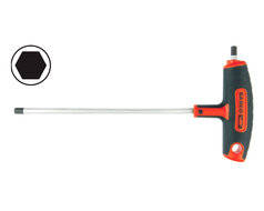 INBUS (IMBUS) klíče v provedení tvaru Tklíč vyrobený z šestihranného profilu a zahnutý do tvaru L. Kratší část klíče je následně zapouzdřena do plastové rukojeti ve tvaru písmen T. Vznikne nám klíč, který při manipulaci můžeme pevně sevřít v dlani a využít torzní schopnosti klíče. Zakončení může provedeno také kuličkou jako v předchozím případě. |