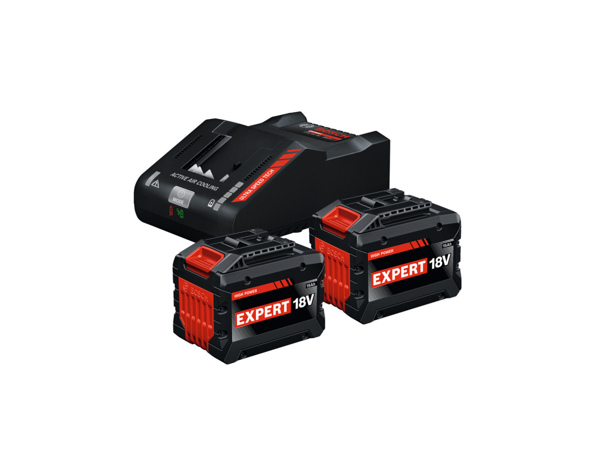 Extrémní vytrvalost pro nejtěžší výzvy. Startovací sada EXPERT (2× EXBA18V-150 + EXAL18V-160). Tato vrcholná sestava s dechberoucí kapacitou 15,0 Ah a revoluční technologií bezpáskových článků (Tabless) poskytuje maximální možnou dobu chodu a výkon srovnatelný se síťovým nářadím. V kombinaci s ultrarychlou 16A nabíječkou a inteligentním chlazením jde o ultimátní řešení pro stroje Bosch Professional BITURBO a alianci AMPShare. Ideální pro stacionární práci v terénu bez přístupu k elektrické síti.
