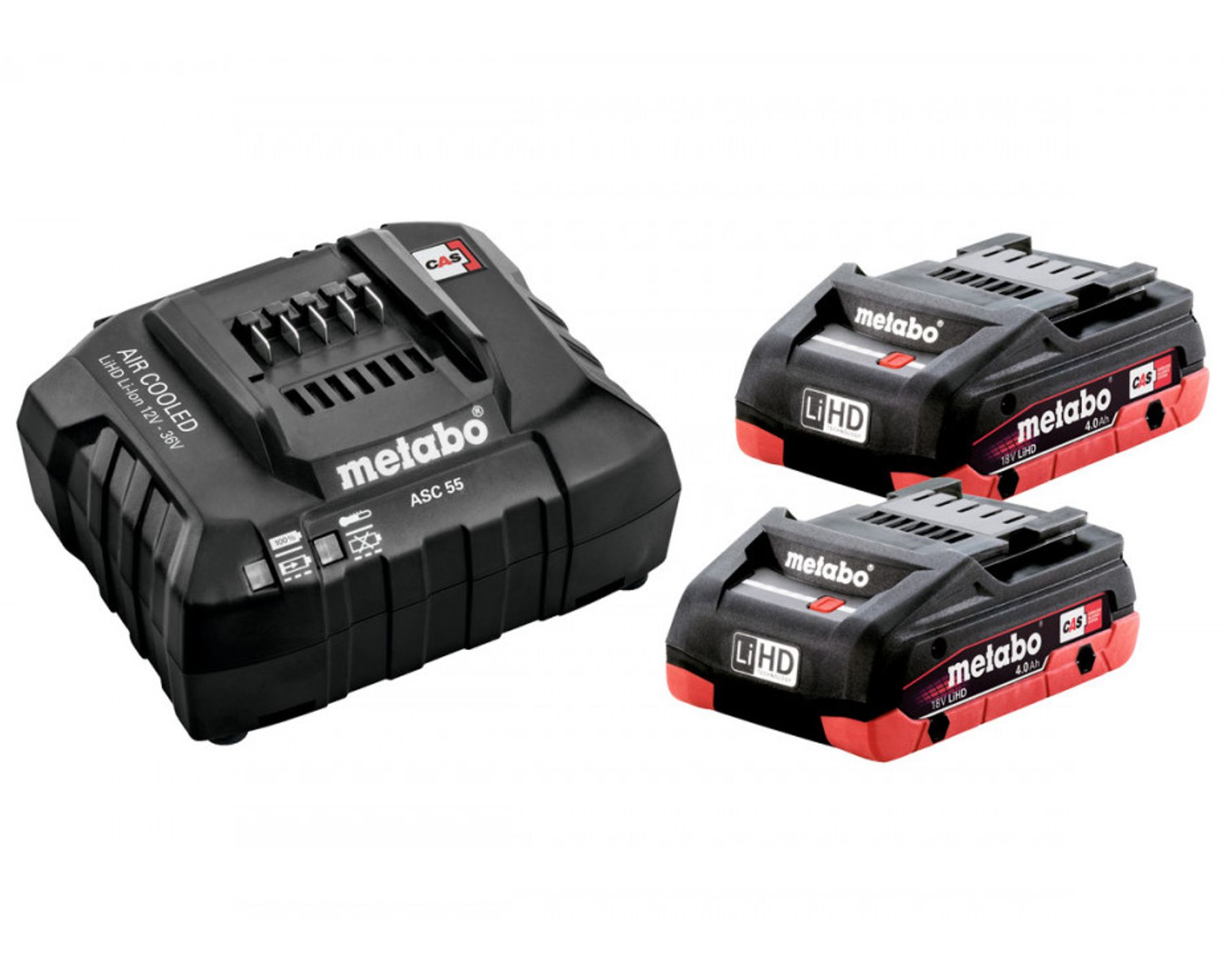 Startovací sada Metabo, nabíječka ASC 55 + 2x akumulátor LiHD 4,0 Ah SE