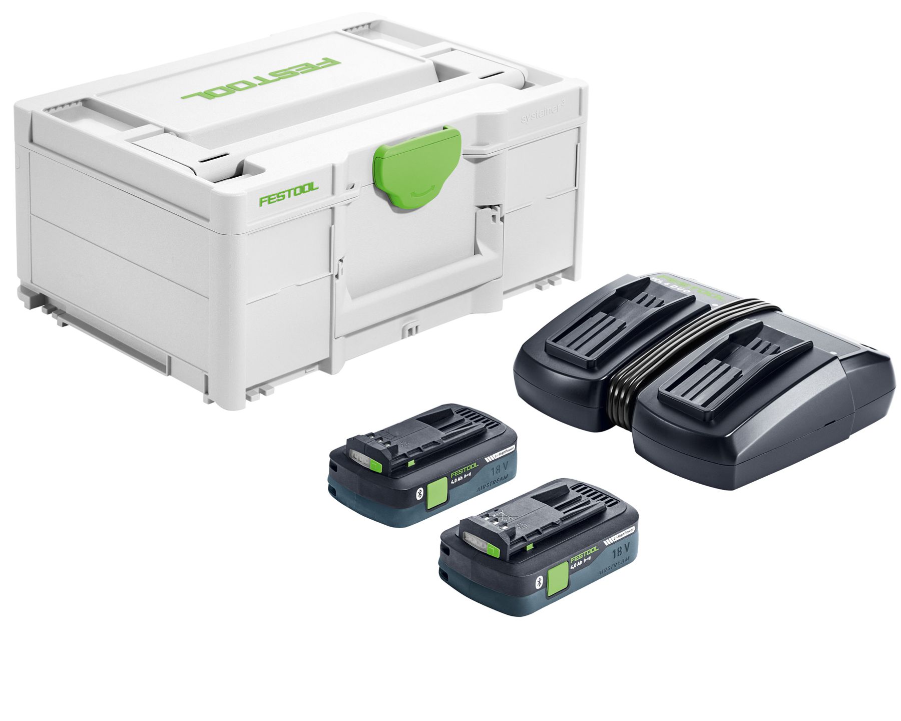 Napájecí sada SYS3 ENG 18V 2x akumulátor 18V kapacita 4,0 Ah Bluetooth, 1x rychonabíječka TCL6 Duo, systainer SYS3 M 187