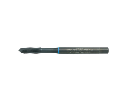 Strojní závitník s přímou drážkou pro průchozí otvory. Vyrobený z materiálu HSS-EV s oxidovaným povrchem.