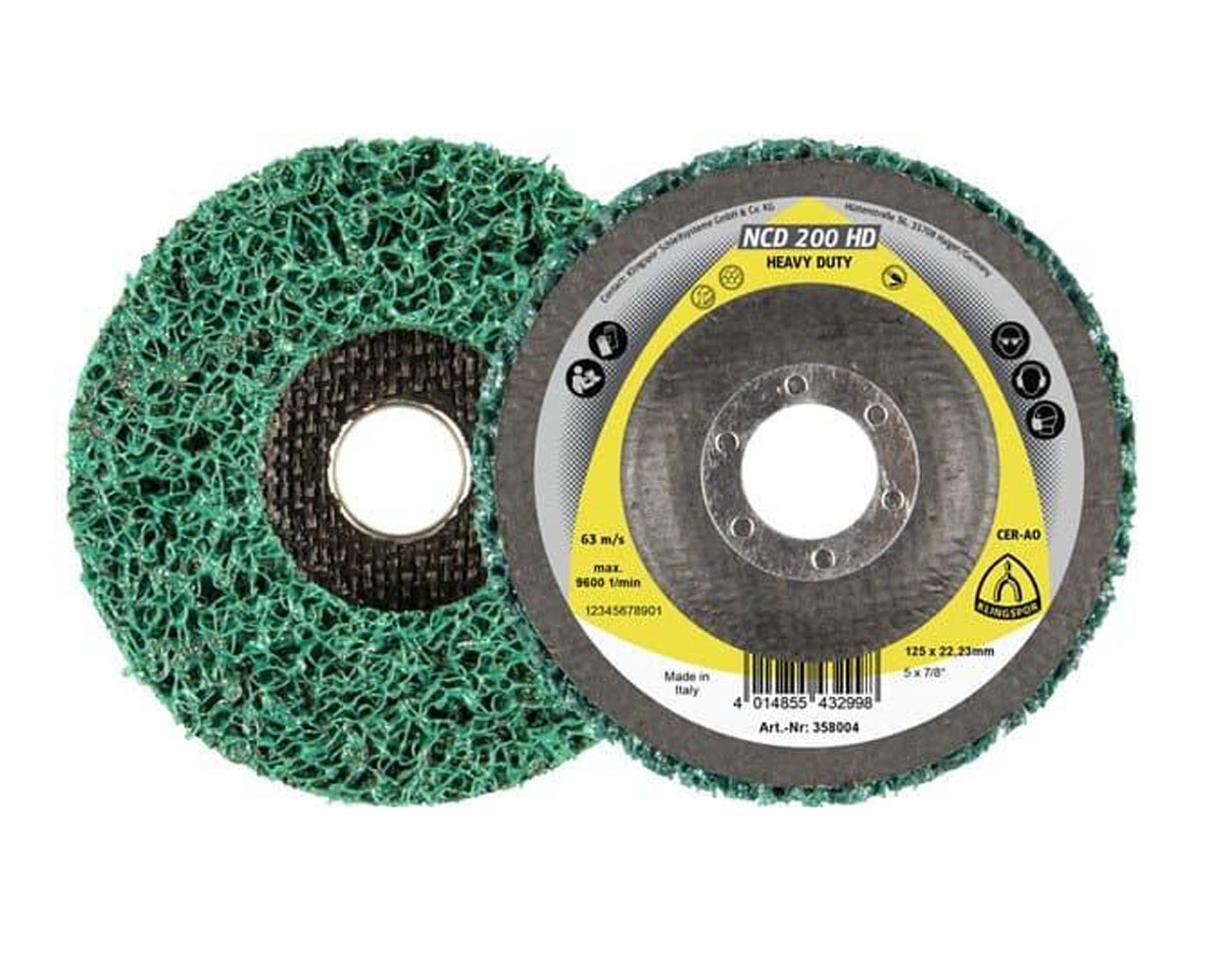 Klingspor NCD 200 HD je vysoce výkonná čisticí deska (tzv. „negativní disk“ nebo „čisticí rouno“) v provedení Heavy Duty. Je navržena pro agresivní odstraňování rzi, okují, starých nátěrů, laků a zbytků tmelů z kovových povrchů. Díky tvrdší a agresivnější vliesové struktuře s obsahem keramizovaného korundu nabízí extrémně rychlý pracovní postup a dlouhou životnost i při vysokém zatížení. Je ideální pro přípravu povrchů před dalším zpracováním bez poškození základního materiálu.