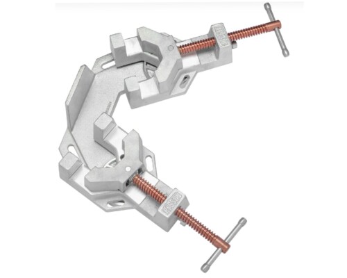Litinový vyriabilní upínač speciálně vyvinutý pro výrobu ocelových konstrukcí, otevřená pracovní oblast umožňuje snadný a trvalý přístup k obrobku, vřetena potažena mědí proti ulpívání rozstřiku při svařování, rozsah úhlu 5-180°, rozpětí čelistí 2x100mm, hmotnost 10,66kg