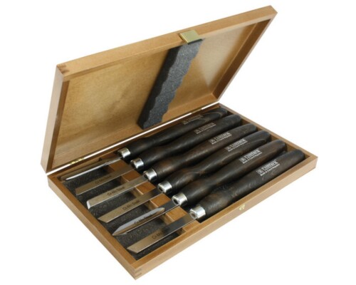 Sada řezbářských dlát v dřevěné kazetě + brousek, 9ks